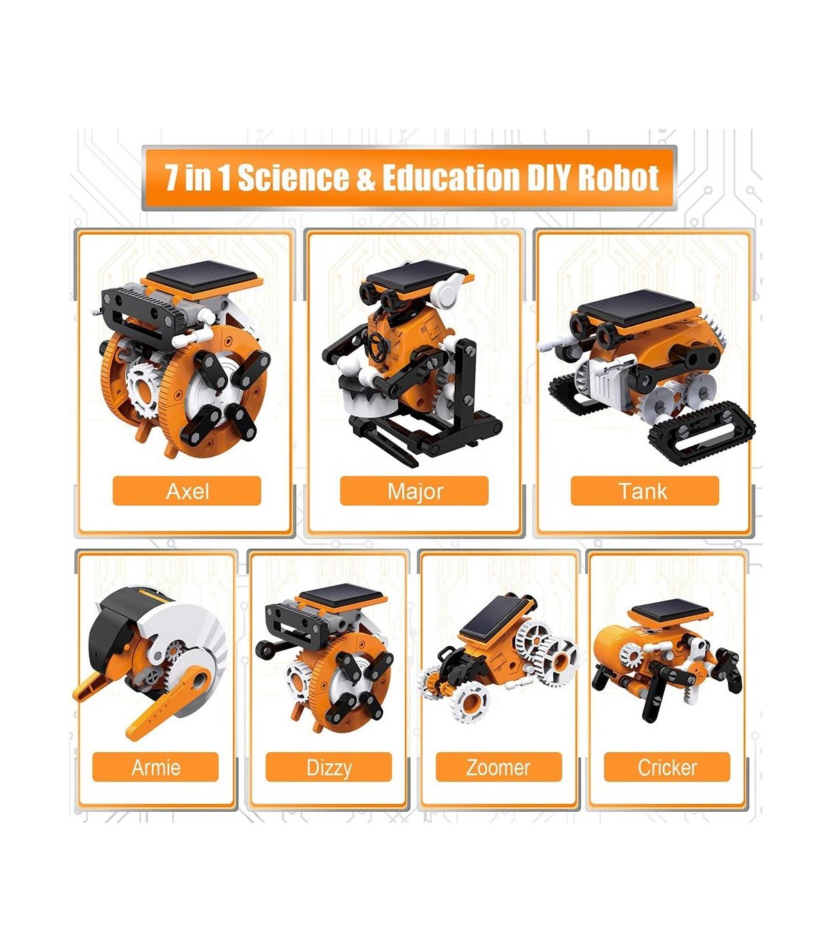 این محصول یک اسباببازی انرژی خورشیدی است که با در نظر گرفتن مفاهیم دوستدار محیط زیست طراحی شده و میتواند به ۷ حالت مختلف ربات مونتاژ شود.
