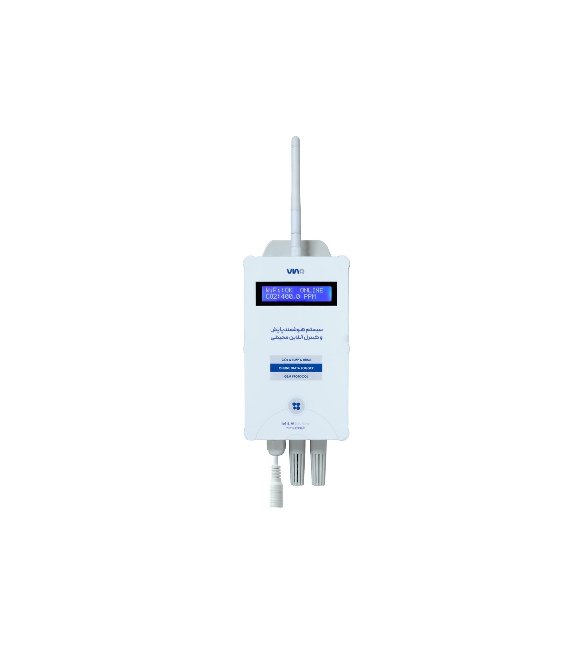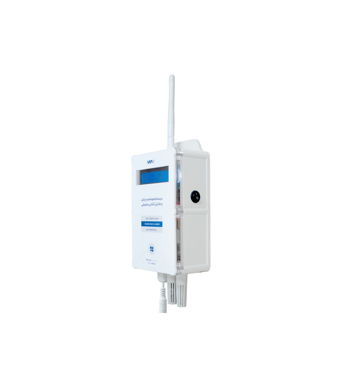 دیتالاگر دی اکسید کربن ویاک مدل CO2-MG01 یک دیتالاگر بی سیم جهت پایش آنلاین میزان دی اکسید کربن (CO2)، دما و رطوبت محیط می باشد که می توان با اتصال آن به اینترنت، در هر لحظه از شبانه روز و هر نقطه از دنیا توسط اپلیکیشن تلفن همراه ویاک، میزان دی اکسید کربن، دما و رطوبت محیط را به صورت آنلاین و لحظه مشاهده و هشدارهای لازم را دریافت نمود.