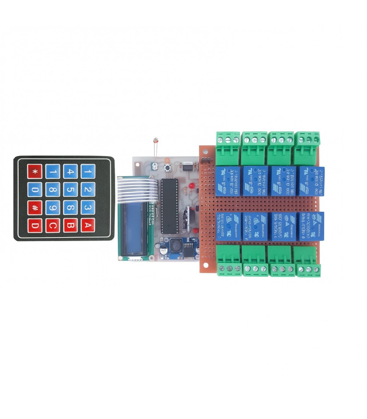 LCD دو در شانزده کاراکتری جهت نمایش خروجیها، دما، زمان و وضعیت عملکرد